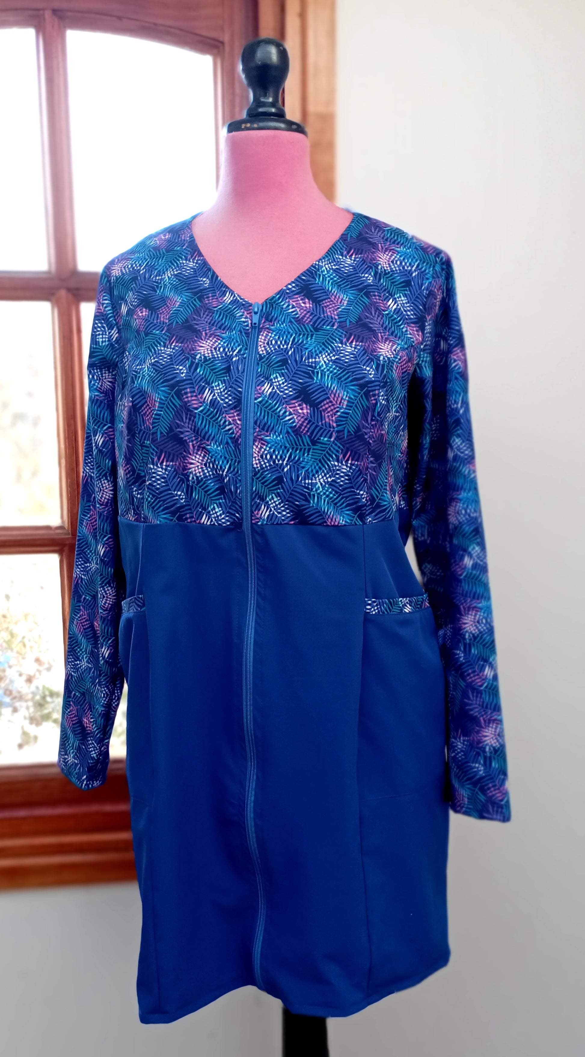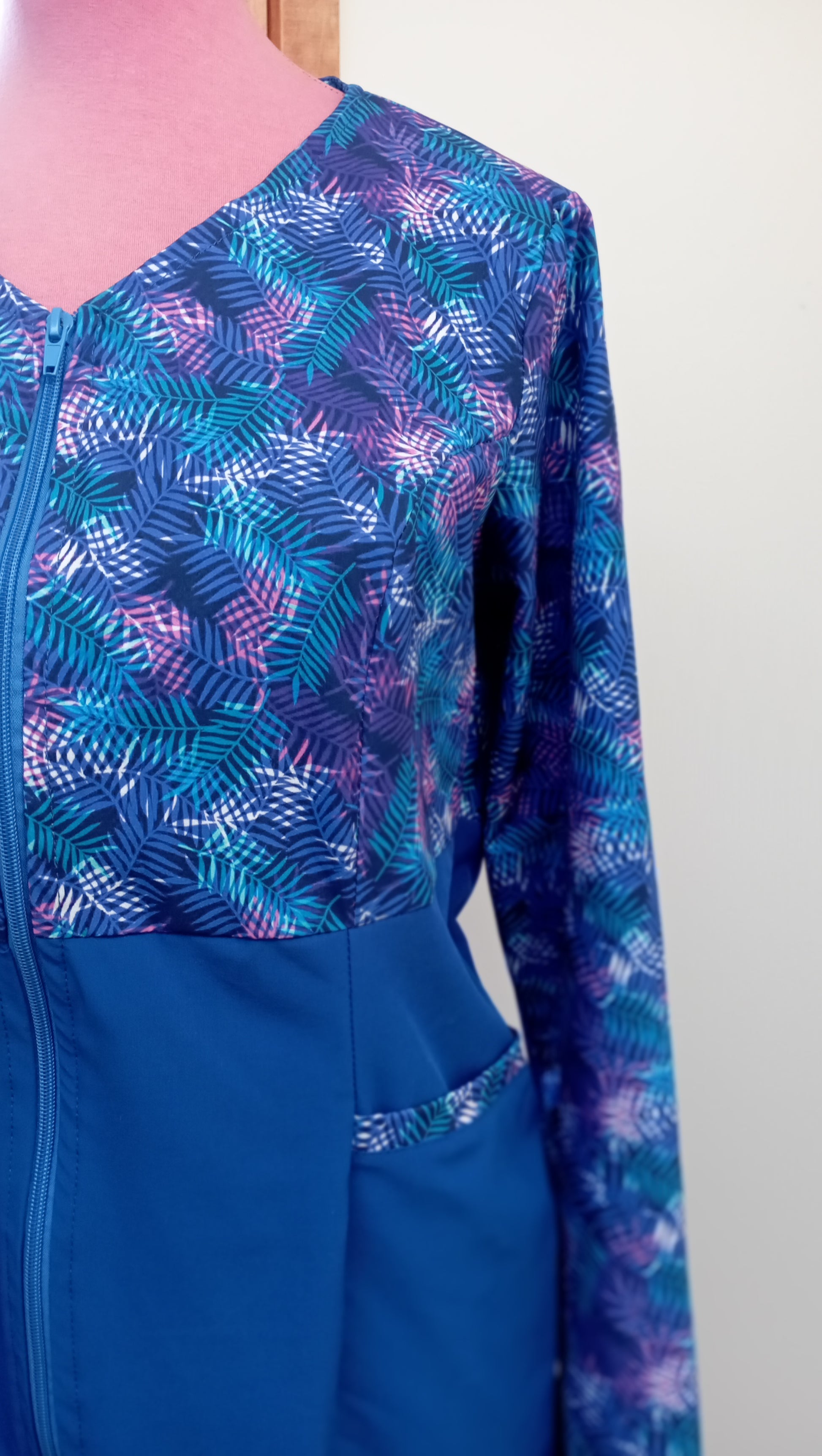 Tela: Ambas telas son antifluidos spandex (con elasticidad) en color azul.