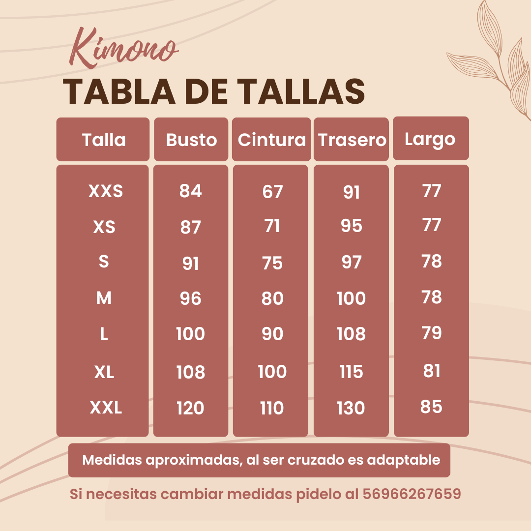 Envio: Una vez hecho tu pedido te llegara confirmacion a tu mail y solo deberas esperar, en este momento serás agendada en lista de espera y te llegara en 2 semanas APROX. Una vez hecho tu envio te llegara mail con numero de seguimiento del paquete (no antes, como son productos hechos a mano no hay códigos de seguimiento durante el proceso de confección). Las semanas pasan volando, si ya decidiste que quieres tu kimono te sugiero dejar hecho tu pedido.