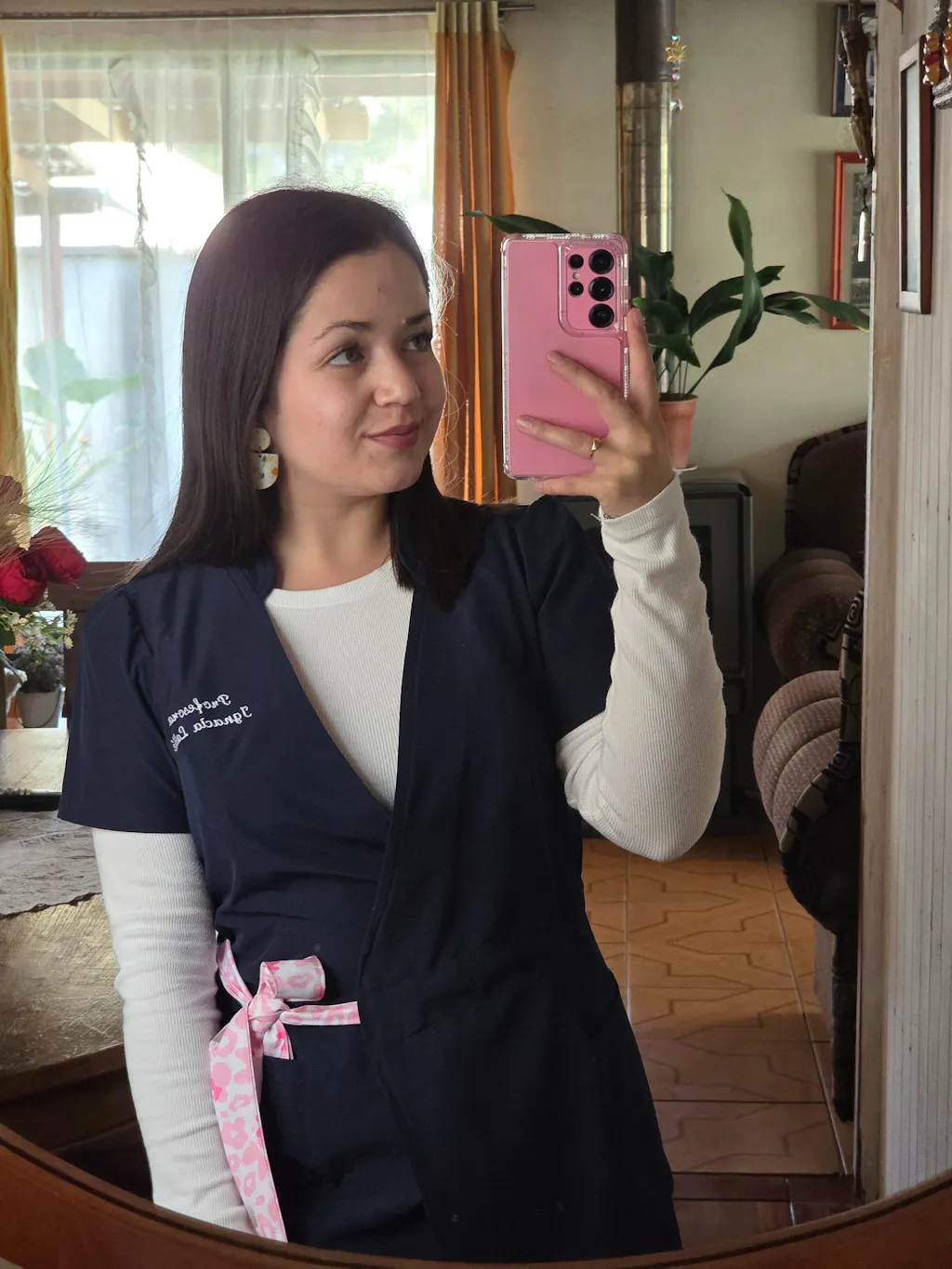 Compré el kimono Valentina y el delantal Gracia para mi trabajo y quedé encantada. La calidad del material es excelente, las terminaciones son hermosas y los cortes están muy bien logrados. La talla corresponde perfectamente a las medidas publicadas y se ajustan muy bien al cuerpo, haciéndolos cómodos y favorecedores. Sin duda, han sido de los delantales más bellos que he encontrado; realmente me hacen sentir hermosa cuando los uso. ¡Muchas gracias!